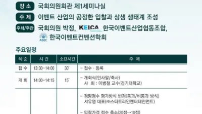 박정 의원, “이벤트산업 공정입찰과 상생 생태계 조성을 위한 산․학․관 토론회 개최” - 박정 주최, 한국이벤트산업협동조합, 한국이벤트컨벤션학회 주관 - 9일 오후2시, 국회의원회관 제1세미나실 국회에서 제도가...