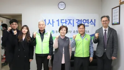 파주시 남부스마트복지센터, 해솔 11단지와 주거복지사업 협약식 가져 파주시문산종합사회복지관 남부스마트복지센터(관장 정시몬)는 3월 8일 파주 운정신도시 주택관리공단 해솔마을 11단지(소...