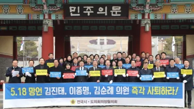전국시도의회의장협의회, 2월 15일 광주 5.18 민주묘지에서 규탄대회 경기도의회 의장, 조속한 헌법 개정으로 5.18 민주화 운동의 민주이념을 헌법전문에 반영 촉구 - 송한준 전국시도의회의장협의회 회장과 전국 광역의회 의장들은 2월...