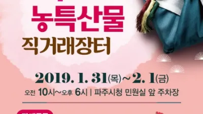 파주시, 설맞이 농특산물 직거래장터 개설 - 파주 명품 농특산물이 한자리에 파주시는 민족 대명절 설을 맞이해 시민들을 위한 ‘2019년 설맞이 농특산물 직거래장터’를 연다. 이번 직거래장터는 1월 31일~2월1...