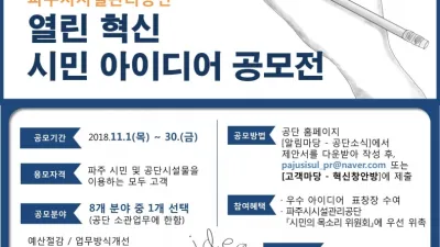 2018-10-31 13:39:59파주시시설관리공단 열린 혁신 시민 아이디어 공모전 개최