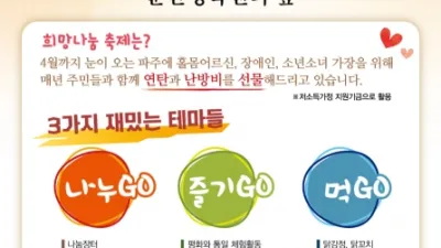 파주시 운정2동, 복지사각지대 발굴을 위한 책 나눔 행사 파주시 운정2동 행정복지센터는 지난 4일 시민들과 함께 하는 복지사각지대 발굴을 위한 책 나눔 행사를 진행했다. 이번 책 나눔 행사는 운정2동 지역사회보장협의체와 해솔마을 1...