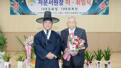 제13대 최복현 자운서원장 취임식 열려 - 2018년은‘자운서원 재건의 해’ 파주시는 16일 보훈회관 대강당에서 제12대 김윤립 자운서원장의 이임식과 제13대 최복현 자운서원장의 취임식이 열렸다고 밝혔다. 최복현 자운서원장은 취임사에서 2018년을 ‘자운서원 ...