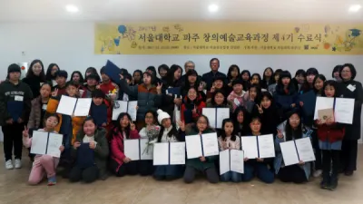 서울대학교 파주 창의예술교육과정’제4기 수료식 개최 - 1월 18일까지 제5기 신입생 모집 파주시와 서울대학교 미술대학이 헤이리 신양전시관에서 개설 중인 ‘서울대학교 파주 창의예술교육과정’이 지난 23일 학생과 학부모, 파주시와 서울대학교 관계자 약 100여명...