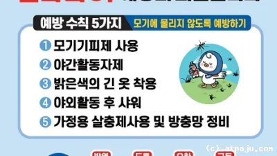 파주시, 추석 연휴기간 말라리아 예방 방역 강화- 취약지역 중심 집중 방역… 카카오톡 상담 통해 민원 접수 가능 파주시는 추석 연휴 기간(10. 3.~10. 9.) 동안 말라리아 예방을 위해 오는 10월&...
