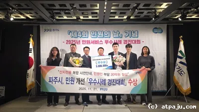 파주시, 경기도 민원서비스 개선 우수사례 경진대회서 ‘우수상’ 수상- 산지전용 기간 연장 사전 안내로 민원 비용 20억 원 절감 성과 파주시는 지난 21일 경기도가 주최한 '2025년 민...