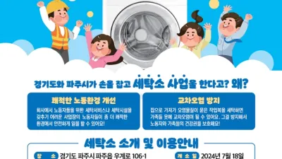 2024-07-03 04:40:37‘경기북부 최초’ 노동자 작업복 전용 세탁소 파주시 블루밍, 8일부터 10일간 무료로 임시 운영