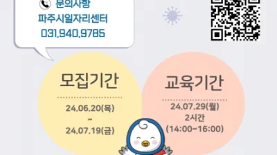 2024-06-20 00:46:50파주시, 장애인 대상 취업 특강 참여자 15명 모집