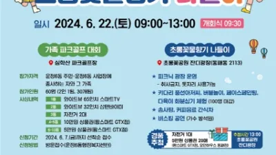 6월 22일, 파주시 운정6동 가족 파크골프 대회 개최 -‘초롱꽃물향기 나들이’행사도 진행…풍선아트 등 즐길 거리 가득 파주시 운정6동 가족 파크골프 대회가 오는 22일 심학산 파크골프장에서 개최된...