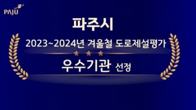파주시, 겨울철 도로제설 평가 ‘우수기관’ 선정 - “시민들의 적극적인 동참으로 일궈낸 결실” 파주시는 경기도에서 주관하는 ’23~’24년 겨울철 도로제설평가에서 우수...