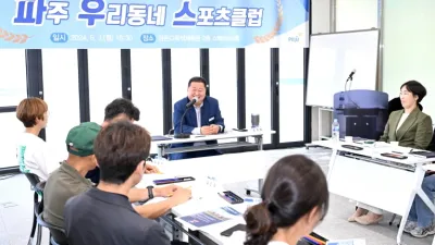 파주시 생활체육 활성화’ 이동시장실 - 파주시장기 여성축구(풋살)대회 개최 검토 등 김경일 파주시장은 6월 3일 금촌다목적체육관에서 파주시 생활체육 활성화를 위한 이동시장실을 열었다. 관내 등록스포츠클럽 대표, 그 외에도...