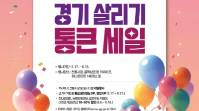 ‘경기 살리기 통큰 세일’ 농축수산물 최대 30% 할인 ○ 6월 6일부터 16일까지 로컬푸드 직매장, 하나로마트 등 통큰 세일 동참 - 로컬푸드 직매장 농산물 10%, 온라인 마켓경기 제철 과일 20~30% 할인 - 도내 농협유통센터&...