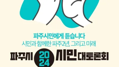 파주시 2024 시민 대토론회, 시민 토론단 200인 모집 민선8기 출범 2주년을 맞아 파주시는 지난 2년 시정을 평가하고 향후 2년의 발전방향을 모색하는 ‘파주시 2024 시민 대토론회’를 개최한다. &nbs...