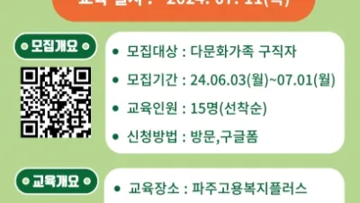 2024-06-03 01:22:40파주시,‘다문화가족 특강 과정’참여자 15명 모집