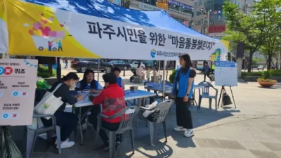 파주시, 정신질환 인식개선 위한‘마음돌봄챌린지’개최 파주시에서 운영하는 파주시정신건강복지센터(이하 센터)는 5월 31일 금릉역 앞 중앙광장에서 ‘마음돌봄챌린지‘ 행사를 개최했다.  ...