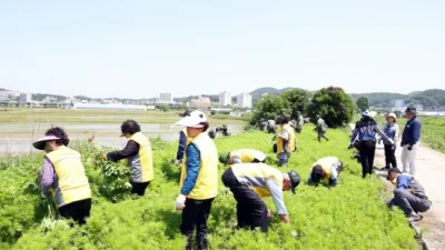 파주읍, 생태계교란 야생식물 제거 위한 민관군 합동 발대식 - 가시박, 돼지풀 등 갈곡천 인근 유해식물을 제거 파주시 파주읍은 생태계교란 야생식물 제거를 위해 민관군이 손을 잡고 총력 지원에 나선다고 밝혔다. 이를 위해 파주읍은 2...