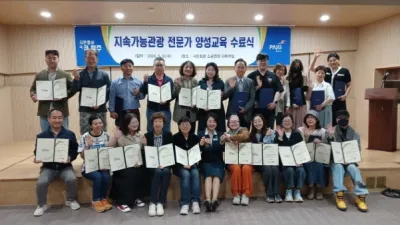 파주시, 2기 지속가능관광 전문가 양성 교육 25명 수료 파주시는 지난 8일 시민회관 다목적실에서 ‘2024년 지속가능관광 전문가 양성 교육’ 수료식을 개최했다. 이번 교육은 작년에 이어 두 번째로 지속가능한 ...