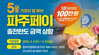 2024-04-29 00:08:375월 가정의 달’은 파주페이 충전으로 온 가족이 즐겁게!…충전 한도 70만 원→100만 원