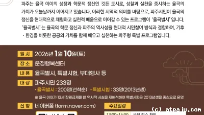 파주시환경센터 에코온, 조선시대 과거 시험에서 배우는 기후행동 ‘율곡 별시’개최 파주시환경센터 ‘에코온’은 파주를 대표하는 조선시대 사상가 율곡 이이의 학문 정신을 현대적 기후행동 가치로 재해석한 기후문화축제&n...