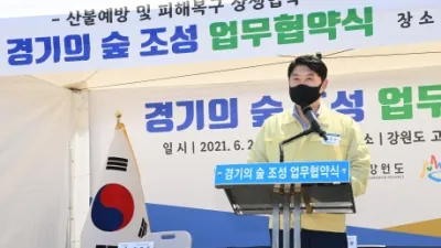 ‘2019 강원산불피해’ 복구 경기·강원·고성, 맞손‥녹색협력 상징 ‘경기의 숲’ 조성 ○ 경기도-강원도-고성군, 2일 산불예방 및 피해복구 협력을 위한 업무협약 체결 - 산불 피해 입었던...