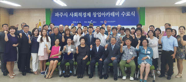 파주시(시장 이재홍)는 지난 14일 파주고용복지플러스센터에서 ‘사회적경제 창업아카데미’ 수료식을 갖고 39명의 수료생을 배출했다고 밝혔다.