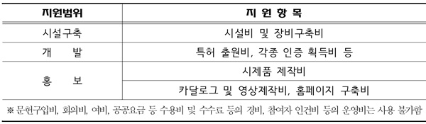 3. 지원내용 : 기업체 인프라 구축비 및 개발비 지원