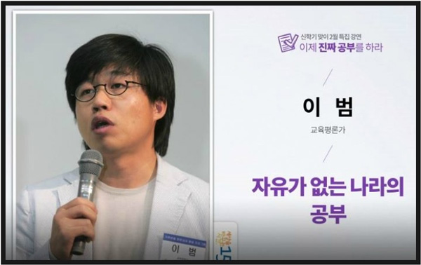 강연자 이범씨는 서울대학교 분자생물학과를 졸업하고 2003년까지 강남 학원가의 스타강사로 활약했다. 이후 사회공헌사업에 기여하면서 ‘세상을 바꾸는 시간 15분’, ‘EBS 연중기획 – 행복한 교육세상’ 등 다수의 방송에 출연하고 강연과 저작활동을 펼치고 있는 교육평론가이다.
