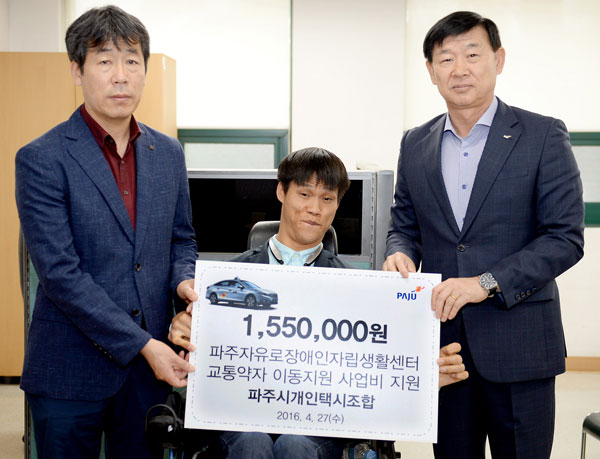 파주시 개인택시조합이 교통약자 이동지원서비스 사업에 155만원을 지원했다.