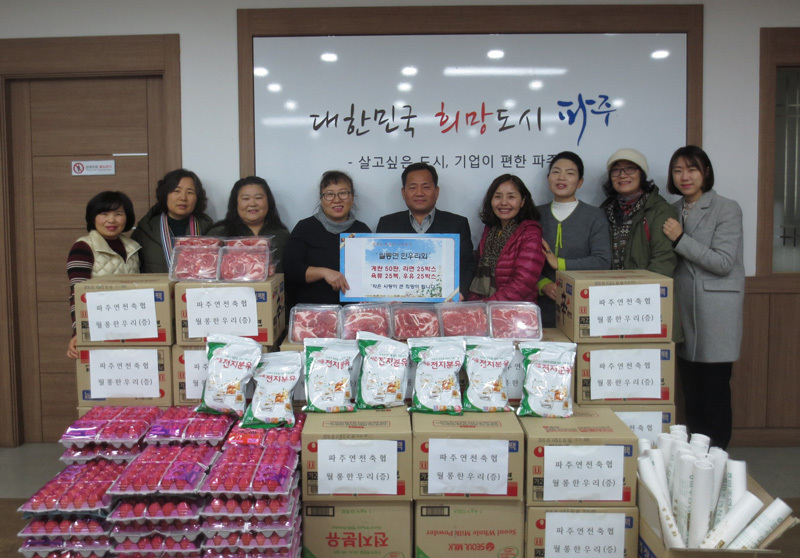 파주시 월롱면 한우리회(회장 김금연)는 지난 21일 홀로 계신 저소득 어르신 25가구에 계란과 돼지고기, 라면, 분유(200만원 상당) 등을 전달했다.