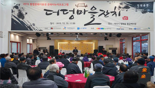 지난 10일 파주시 법원읍 가야리 소재 황금예식장에서 2015년 법원읍 화합•나눔 송년 행사가 개최되었다. 법원읍이 주관하고, 경기문화재단, 쇠꼴마을, 천일회 등 법원읍 32개 기관단체가 후원한 이 행사는 그동안의 행사와는 달리 저소득•노약자층과 법원읍 지도자들이 한마당에서 어우러져 비누만들기 체험, 문화공연 관람 등으로 풍성한 나눔 송년 행사를 시행했다.