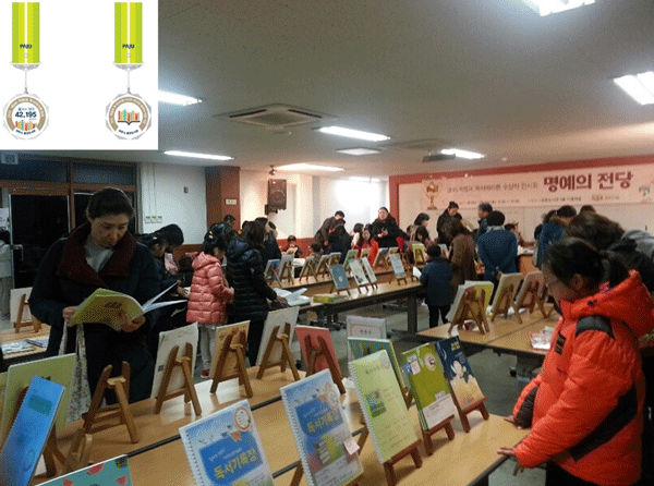 지난 12월 5일(토) 금촌도서관에서 개최된 ‘명예의 전당’ 은 우수 기록장 91점을 전시, 당일 행사에 500명 이상이 전시회 현장을 방문한 가운데 수상자들은 가족과 함께 기념사진을 찍는 즐거운 시간을 보냈다. 또한 예비 독서마라톤 참여자들은 전시된 기록장을 감상하고 자신의 기록장으로 독서상담을 받으며 내년에 명예의 전당에 설 각오를 다졌다.