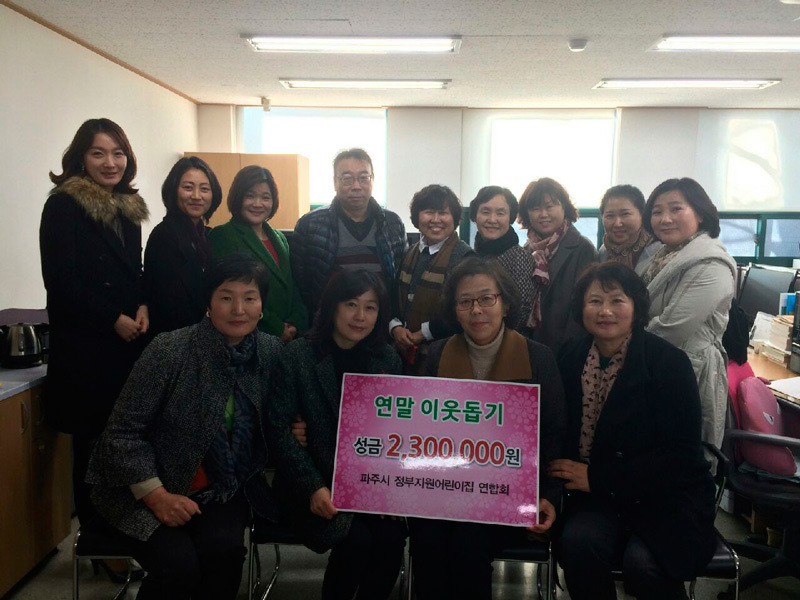 지난 7일 파주시 어린이집연합회 정부지원시설분과(분과장: 금촌어린이집 남영인 원장)는 연말연시를 맞이해 저소득 아동들을 위한 이웃돕기 성금 2백3십만원을 기탁했다.
