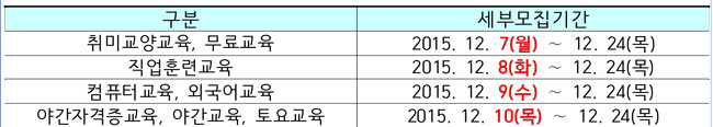 * 모집기간 : 2015. 12. 7(월) ~ 12. 24(목)