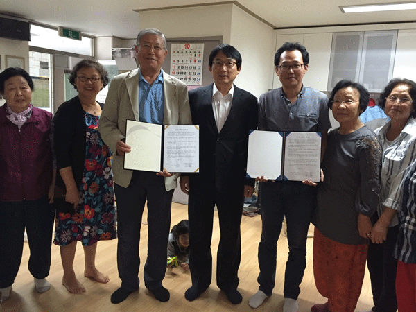 지난 10월 7일(수) 어르신 행복일터 사업을 위해 파주시 경로당 3개소와 컴온커뮤니케이션이 동주민센터와 경로당에서 협약식을 가졌다. 이번 협약에는 교하동 주공2단지 아파트 경로당과 신촌리 경로당, 금촌2동 후곡마을 6단지 아파트 경로당이 참여했으며, 이 협약을 통해 연간 360여명의 어르신에게 일자리를 제공할 예정이다.