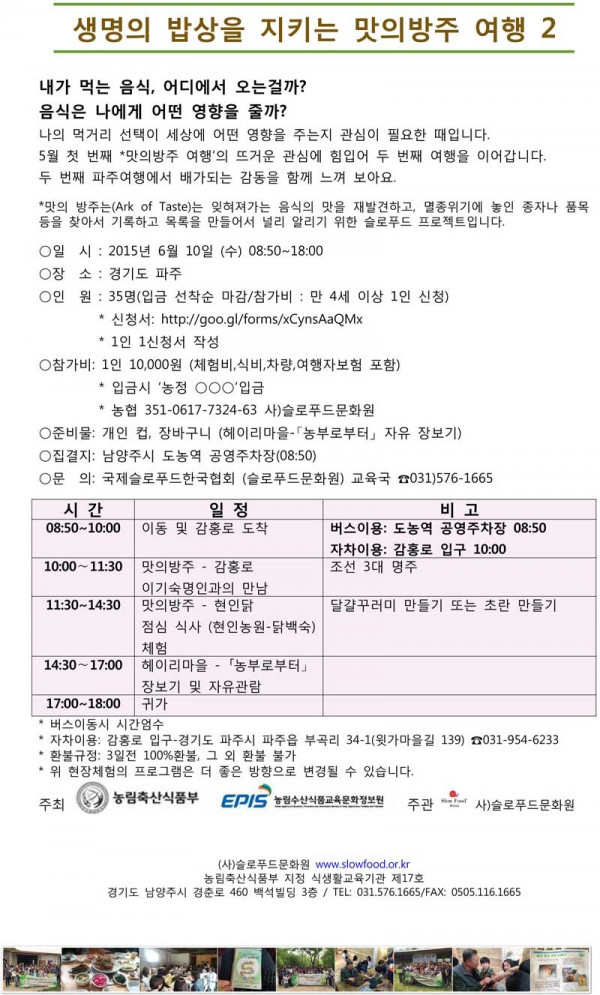 5월 첫 번째 '맛의방주 여행’의 뜨거운 관심에 힘입어 두 번째 여행을 이어갑니다.