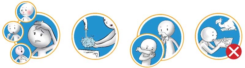 - 화장지나 손수건이 없다면 대신 옷 소매 위쪽으로 입과 코를 가리고 하기