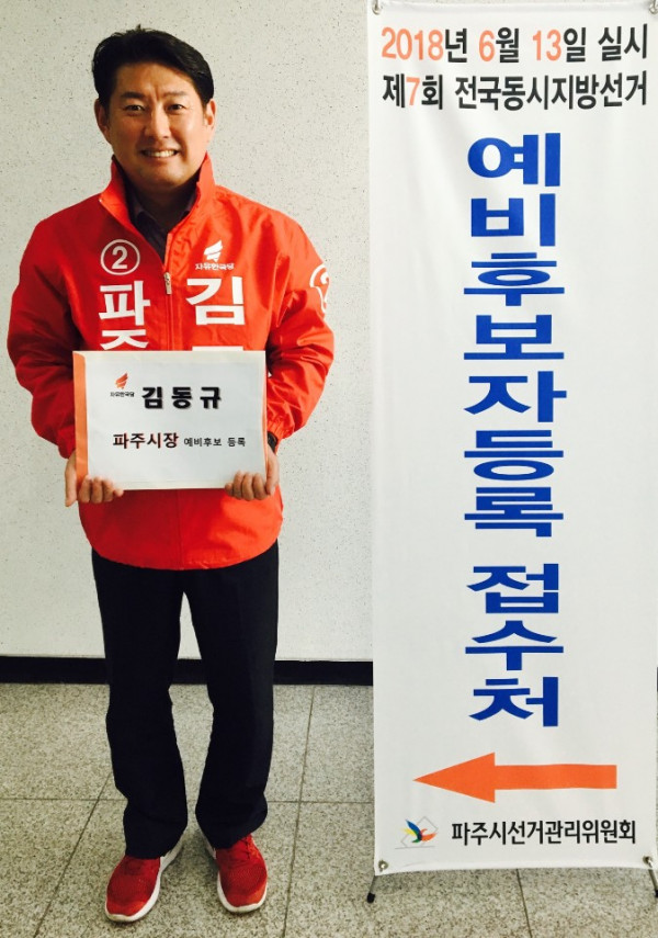 김동규 전 경기도의원이 29일 파주시장 예비후보등록을 마치고 본격 선거 활동의 나선다.
