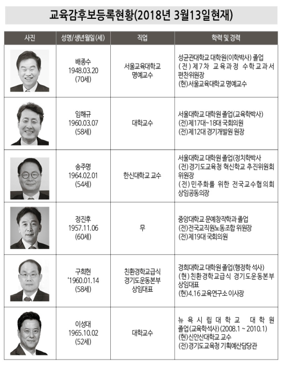 교육감예비후보등록현황(2018년3월13일현재)
