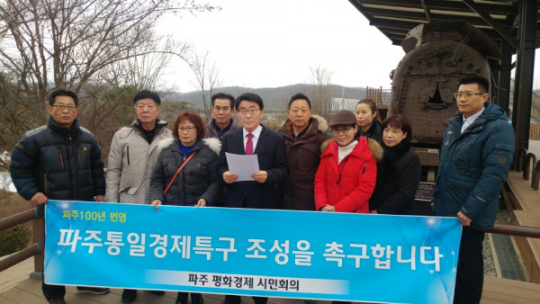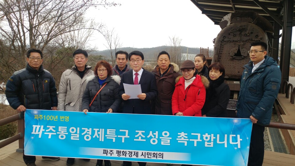 ‘파주경제시민회의’ 우춘환 의장은 “파주는 평화가 경제다”라는 취지의 성명을 발표했다. 우 의장은 “파주는 주변지역의 인구가 15억 명 이상이고 교역규모 세계 2위인 일본, 11위인 한국, 세계의 공장인 중국을 포괄하고 있는 지정학적인 요충지”이므로, “박정 의원이 발의한 20대 1호 법안이 통과되어 파주 개성 해주를 연계한 통일경제특구 조성이 이루어지도록 밑돌이 되겠다”고 회원 일동의 이름으로 선언했다.