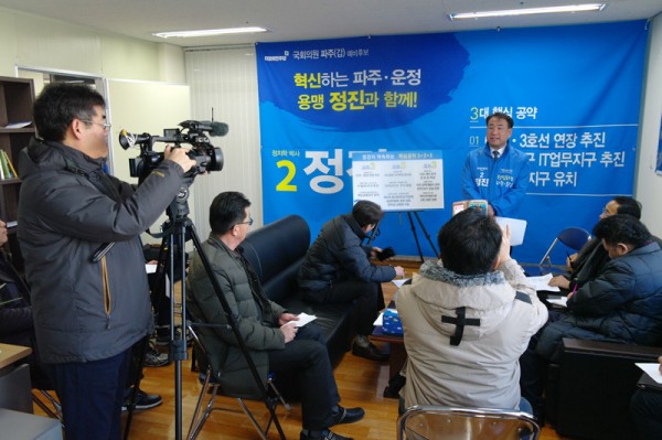 20대 국회의원선거 파주(갑) 정진 예비후보(더불어민주당)가 14일 기자간담회를 열어, 지역 · 입법 · 정치 분야에 걸친 각각 3가지의 핵심공약을 발표했다.