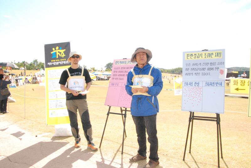 ▲임진강생명평화축제에서 파주시민참여연대(준)가 홍보활동을 하고 있다.