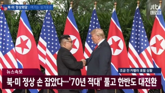 싱가포르의 카펠라호텔에서 두 정상이 만났다. 8초간의 세기의 악수로 서로의