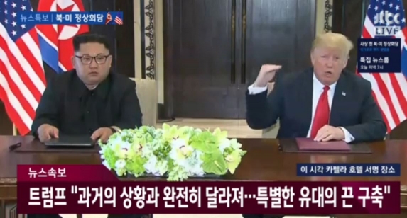 '세상은 중대한 변화를 보게 될 것이다." [북미 합의서 서명식 발언 전문]