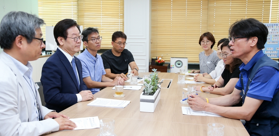 이날 면담은 이재명 도지사가 지난 7월 6일 쌍용차 해고자 30번째 희생자인 고(故) 김주중 씨의 대한문 분향소를 방문, 당시 분향소를 지키던 노조 관계자들과의 약속으로 이뤄진 만남이다.