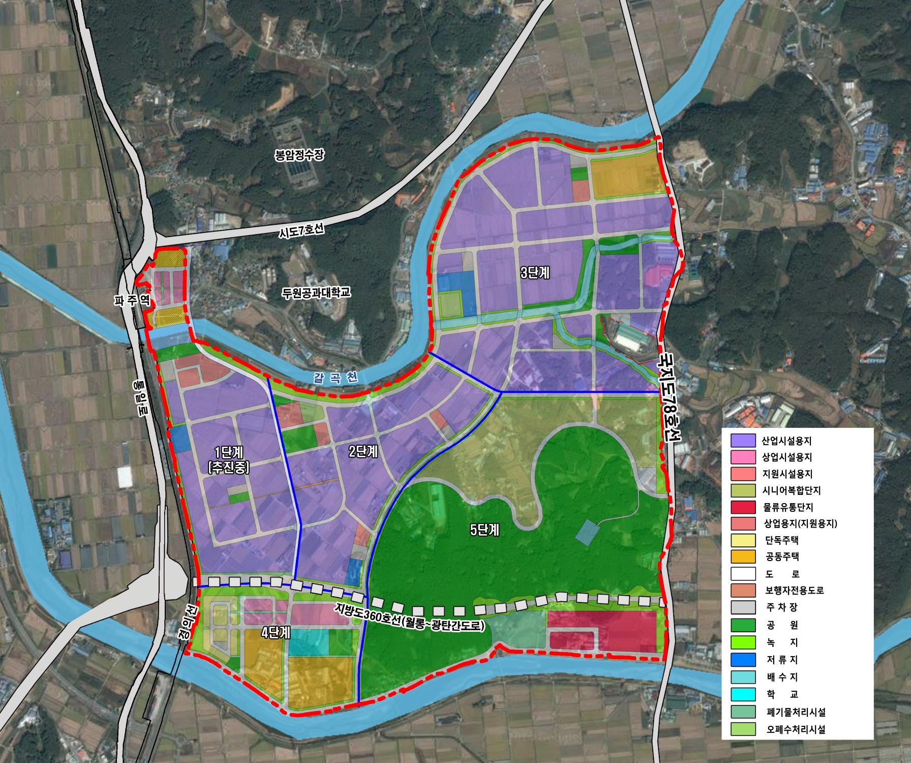 파주읍 봉암리, 백석리 일원 파주희망프로젝트 사업부지는 2단계 51만㎡, 3단계 102만㎡로 첨단업종 위주의 산업단지를 개발하는 사업이다.