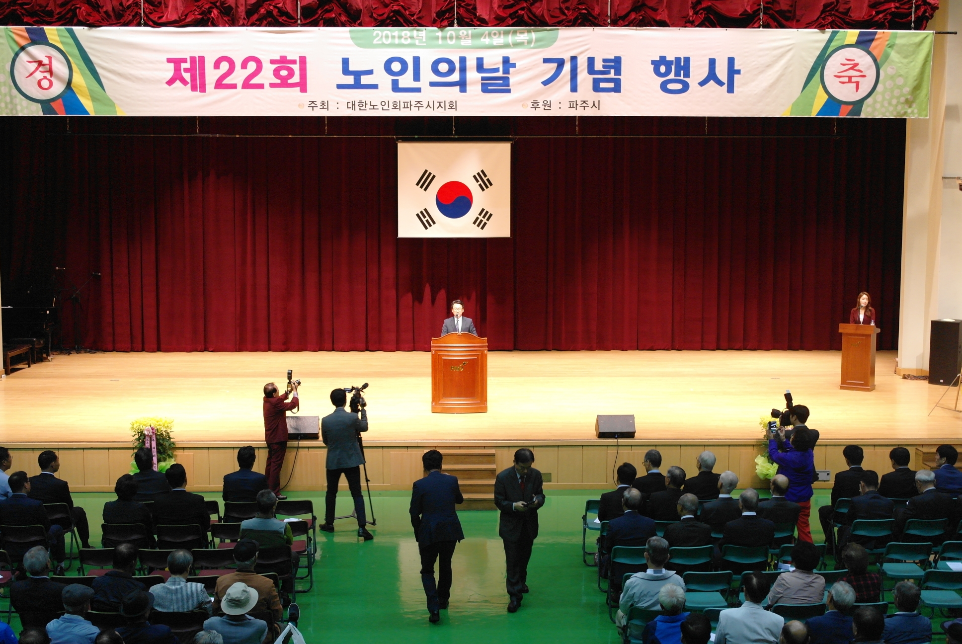 기념식에 앞서 파주시 시립예술단의 합창 축하공연이 진행됐으며 기념식에는 평소 가정과 사회에서 존경받으며 타의 귀감이 되는 모범노인과 봉사정신으로 노인복지 발전에 기여한 노인복지기여자, 모범경로당 등에 대한 표창이 수여됐다.