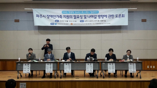 발제자를 맡은 김기룡(전국장애인부모연대) 사무총장은 ‘장애인 가족지원 정책의 개선 방안과 파주시 장애인가족지원센터의 역할’에 대한 주제 발표를 했고 토론자로 나온 안소희 시의원은 정부의 ‘발달장애인 평생케어 종합대책’에 맞춰 장애인가족지원센터 개소와 발달장애인 지원을 위한 조례 제정 등을 적극 시행하겠다고 밝혔다.