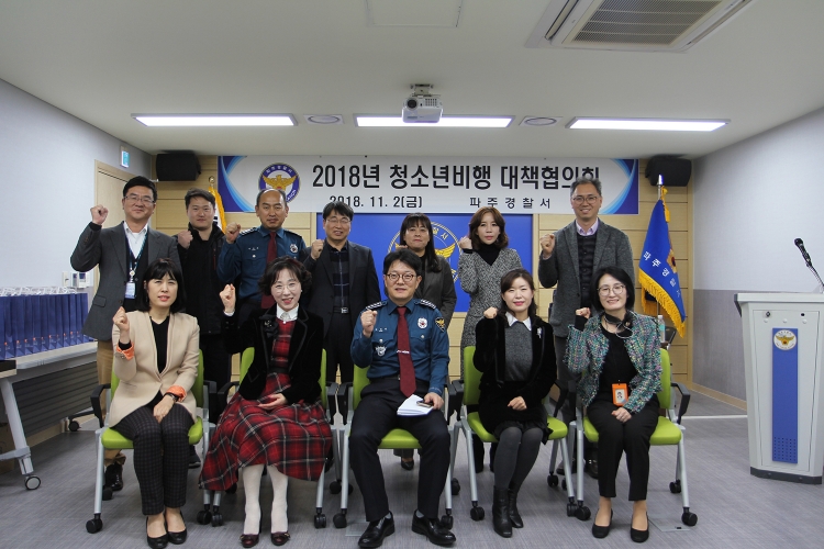 파주경찰서(서장 박상경)는 ’18. 11. 2.(금) 지역사회 청소년들의 비행 및 범죄예방 대책을 위해 청소년관련 기관‧단체들과 첫 번째 청소년비행 대책협의회를 개최하였다.