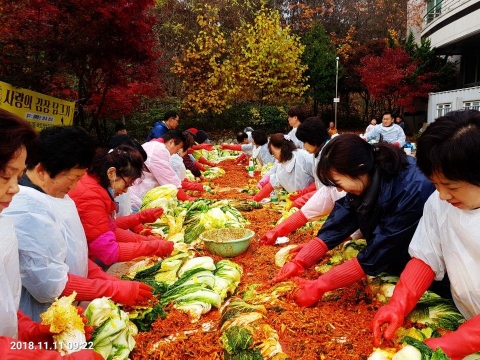 파주시 금촌2동 사랑의 김장 담그기 행사가 지난 9일부터 11일까지 3일간 바르게살기위원회(회장 문동주) 주관으로 7개 단체 및 주민 70여명이 참여한 가운데 금촌2동 행정복지센터에서 열렸다.