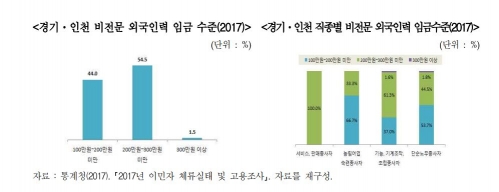 전체 비전문 외국인력 중 47.1%는 경기도와 인천 지역에 취업한 것으로 분석됐다. 경기⋅인천 지역에 취업한 비전문 외국인력의 86.0%는 근로자 30명 이하의 영세사업장에 고용된 것으로 파악됐다.